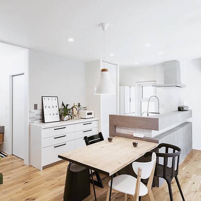 ダイニングとしてもデスクとしても使う大きめのテーブルはJOURNAL STANDARD FURNITUREで購入。天板の下には収納スペースもあって、仕事の道具をしまったり役立っているそう。食事をするときと仕事をするときは、椅子を変えられています。