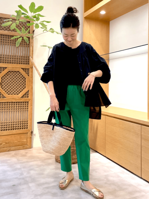 ハイウエスト仕様で自然なスタイルアップが叶い、脚の外側にボリュームを持たせたやわらかなカーブシルエットが今っぽい1本。本格的な見た目でありながらも柔らかなコットンブレンド素材で、はき心地も◎。
