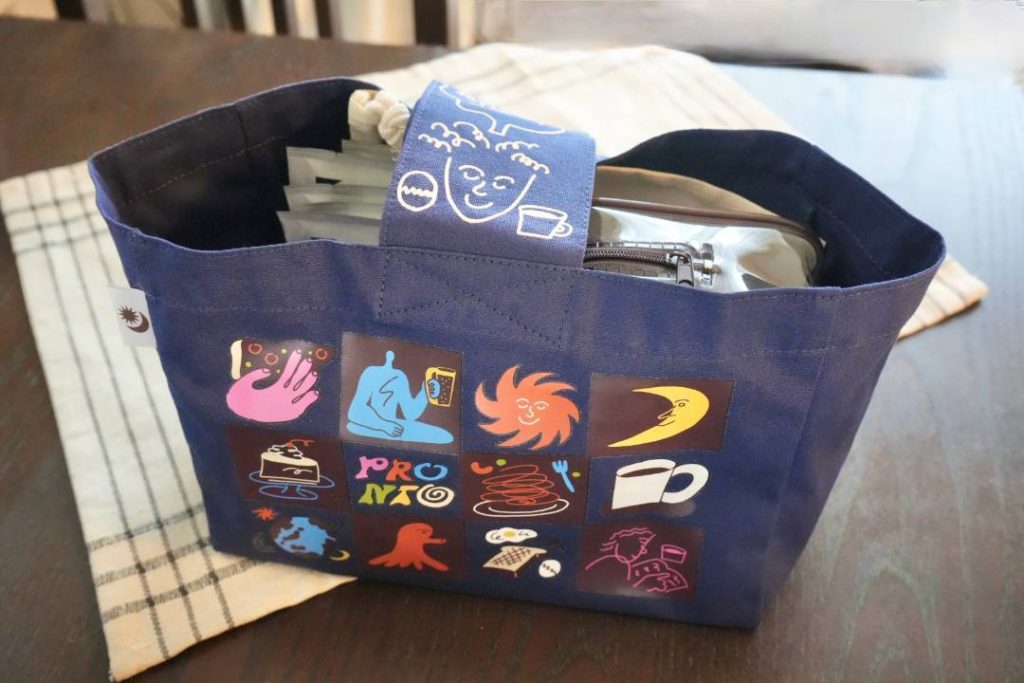 norahiさんデザインのミニトートバッグとクリアポーチが入った、一番ボリュームのあるセット。プロントオリジナルマグカップがついてくるのはAセットだけです。