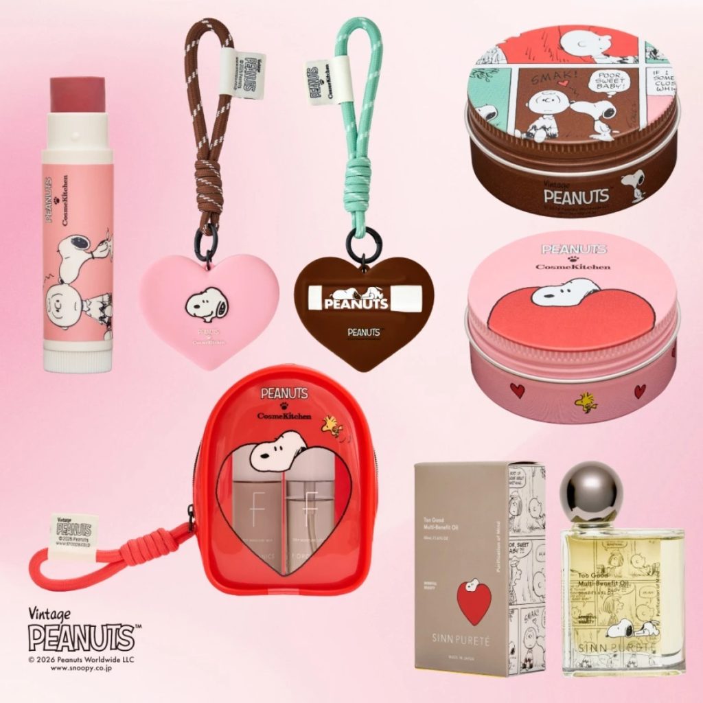 コスメキッチン(Cosme Kitchen)と「PEANUTS」のコラボ第三弾が実現。ハートのデザインやチョコレートの香りのアイテムなど、バレンタインシーズンにもぴったりなアイテムが勢揃い! 2026年1月16日発売です。