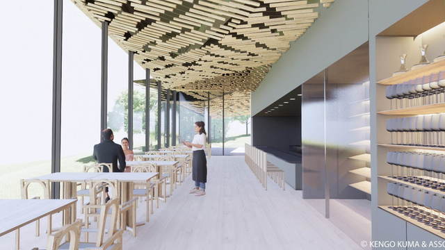 雪の日が映える、国立公園の木々を取り入れた庭園
