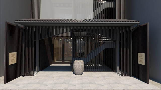 チェックイン前に、まずは館内の雰囲気を案内していただきました。「界 奥飛騨」は、4つの建物からなる“はなれ”の造り。建物の間にある中庭は、外の景色と自然につながるのが特徴です。