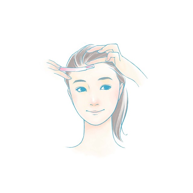Fをこめかみから斜め下方向に塗り、シャープな印象に。