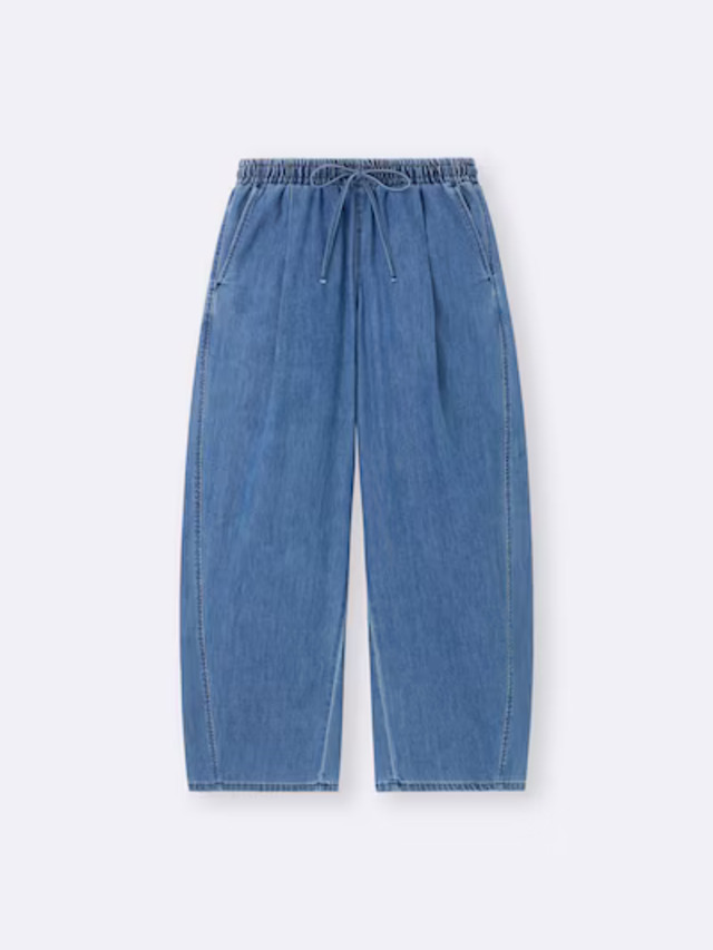 バレルレッグパンツには、大人カジュアルなライトデニムの展開も。爽やかな風合いが春夏のおしゃれにぴったりです。肌離れの良い素材感なので、暑い日も快適!