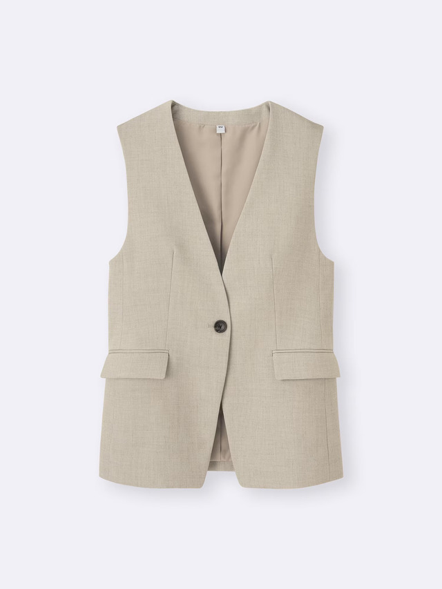着回しの幅が広がりそうなベスト。セットでの着用はもちろん「ジャケットとまではいかないけれど、きちんと感が欲しい」日にも活躍しそうです。Tシャツを合わせたカジュアルコーデも良さそうだなと思いました!