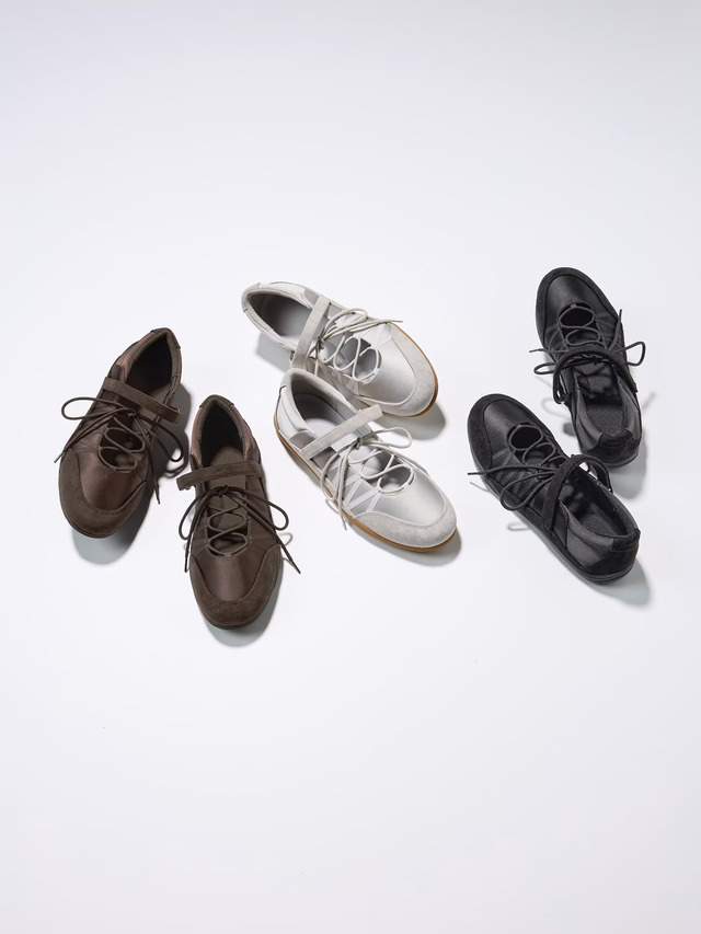 人気の「バレエスニーカー」から、待望の新作が登場!バレエシューズの上品さとスニーカーソールの歩きやすさを掛け合わせたデザインで、きれいめ派にも取り入れやすいのが魅力です。秋冬から人気のレースアップタイプに加えて、今季はギャザータイプとストラップタイプが仲間入り。