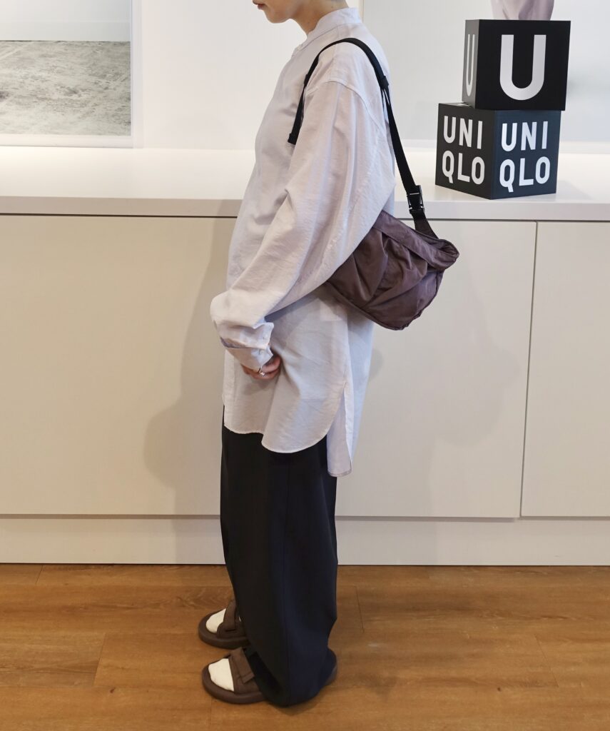 小物まで抜かりないのも、ユニクロ ユーの魅力。ナイロンタフタ素材のバッグは、軽やかで扱いやすく、2サイズ展開でそろいます。A4サイズのPCが収まる「パッカブルショルダーバッグ」は、斜め掛け、肩掛け、手提げと持ち方を変えられるのも優秀です。