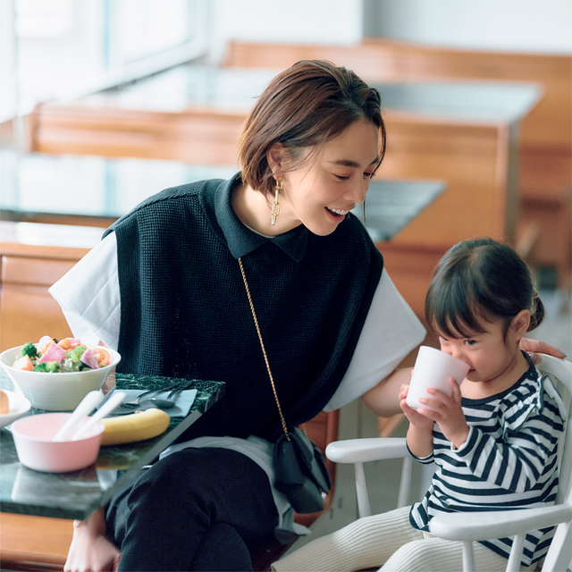 同素材のマニッシュなジャケットと合わせると、洗練されたスタイリングが完成します。
