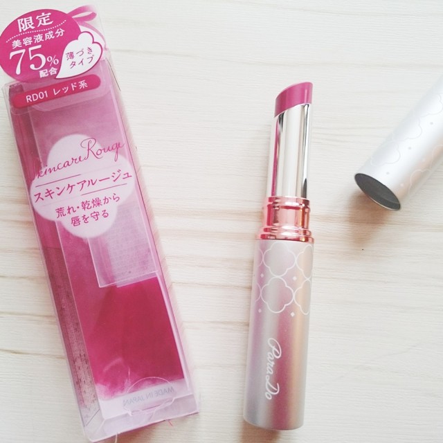 パラドゥ「スキンケアルージュ」は、肌馴染みのよいシアーな発色で、唇がしっとり潤うのでとても気に入りました♪