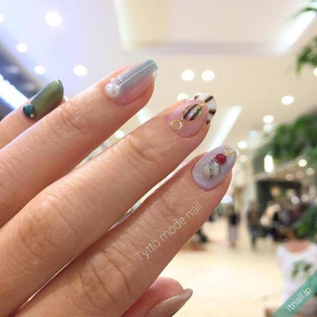 楕円や四角でくり抜けば大人っぽいネイルに♪