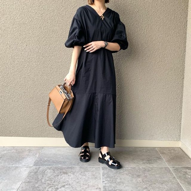 ブラック多めでシックにコーデしつつ、足首を見せてコーデが重たくならないようにしています。