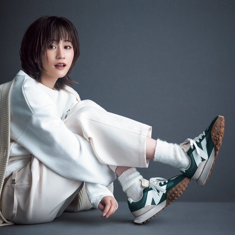 程よい開きのVネックが顔まわりをすっきり見せてくれ、今季らしいゆったりしたシルエットは華奢見せ効果あり。