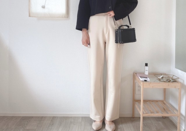 アイボリーのジャケットに、ホワイトのワイドパンツ、ベージュのパンプスを合わせれば全身ニュートラルカラーに。肌見せしても上品コーデになれるのがニュートラルカラーの魅力です。
