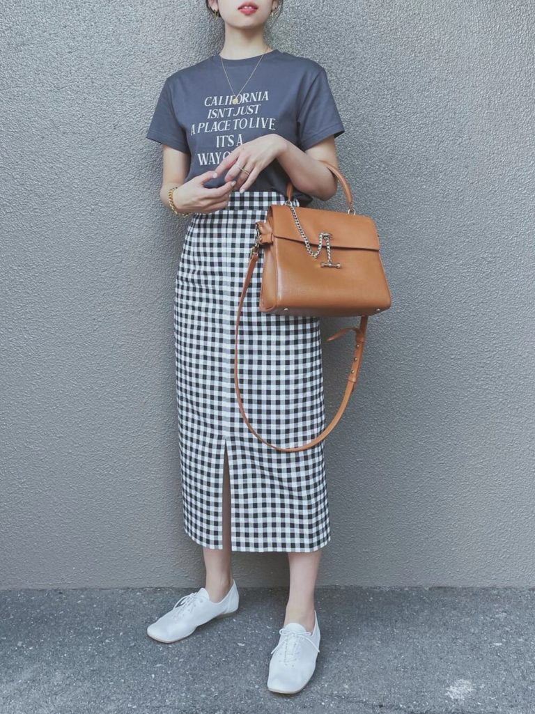 シンプルなデザインTシャツに合わせれば、おしゃれなこなれスタイルを実現できます。