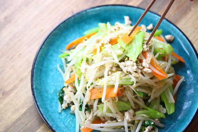 ③もやしとひき肉のスタミナ味噌炒め