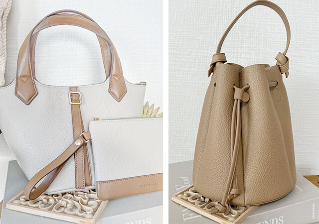 明るいカラーのバッグを取り入れることで、モノトーンスタイルも華やかさをプラスできます。