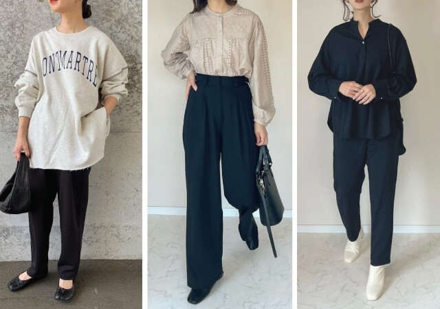 後ろがゴムになっていて楽チン。キレイめスタイルにおすすめのブラック。