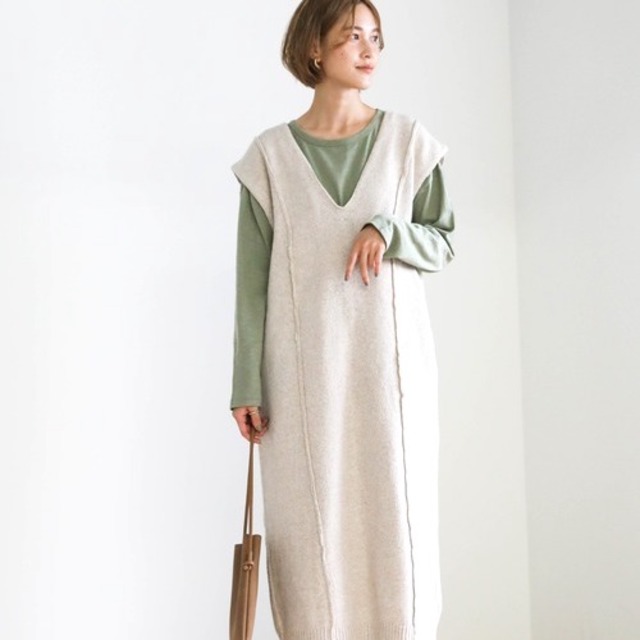 ボタンの開け閉めで2通りの楽しみ方ができて、着こなしの幅も広がります。今回はインナーを合わせて前を開けてゆったり着てみて♪
