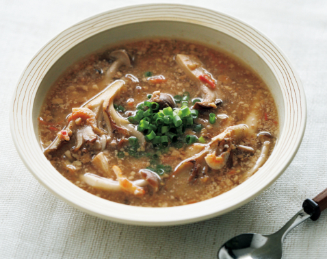 味噌を入れない、塩味の豚汁は素材の旨みを存分に味わえます。旬のきのこをたっぷり入れて、仕上げに加える塩麹が味のかなめ。おいしくするポイントは、スープが透明になるまで灰汁を取り除くことです。熱々を召し上がれ♪