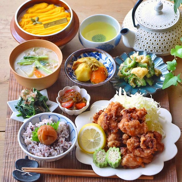 メインのおかずがヘルシーなので、汁物で満腹感がわくような具だくさん味噌汁にするといいでしょう。