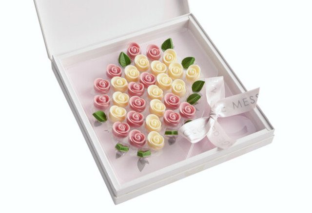 特別なシーズンにぴったりの深紅の薔薇をかたどった特別なギフトBOX「シリーヌ」。クリスマス限定フレーバーを含むマカロン24個の詰め合わせです。