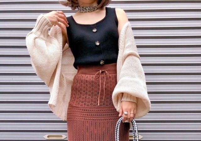 こちらもしっかりとした編み地で体のラインをカバー!セットアップとしてだけではなく、普段のスカートとしても大活躍してくれそうです♡