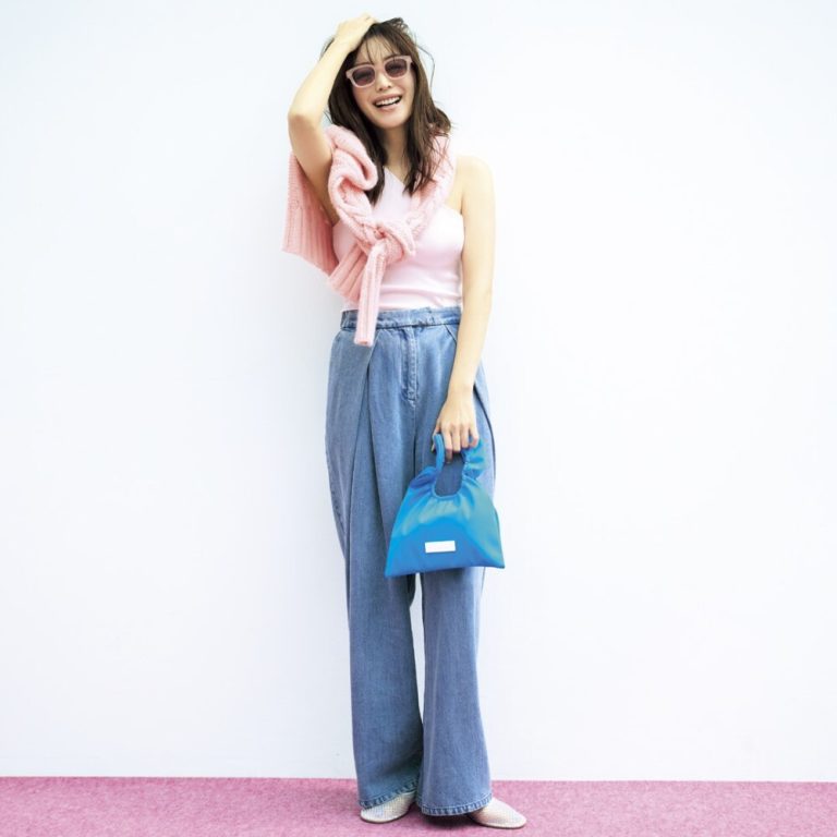 さらにオーバーサイズのスウェットも秋ルックスにぴったり。腰回りまで丈があるので、さりげなく体型カバーできるのも魅力。まっさらな白スウェットには、秋らしいこっくりオレンジカラーのプリーツスカートを合わせて、レディな秋カジュアルに。