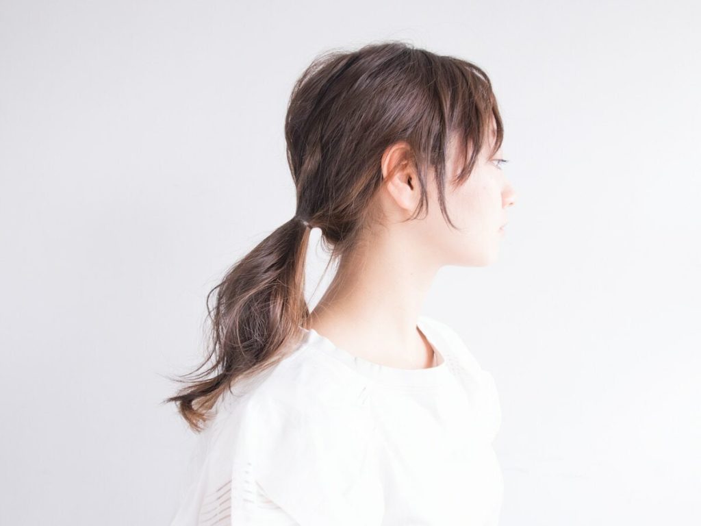 ひとつ結びの場合、軽く表面をほぐすとこなれ感がでる