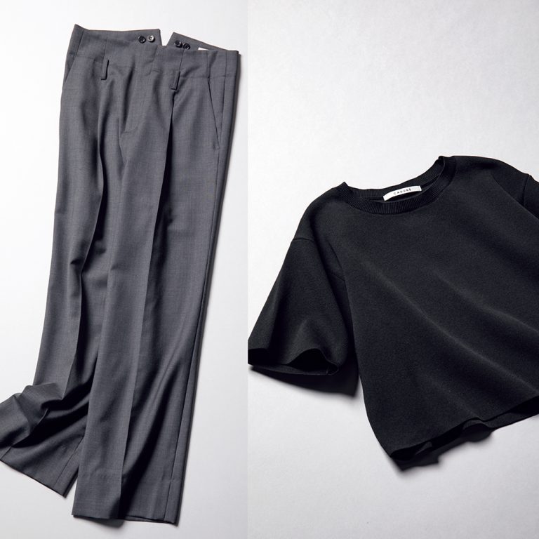 こちらは、シンプルなアイテムでまとめた大人コーデ。どれも無地ですっきりとしていますが、ゆとりのあるワイドパンツが程よいリラックス感を演出しています。