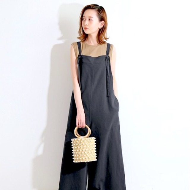 小物はフラットシューズやコンパクトなバッグを合わせて今っぽく仕上げて♡足元にベージュやホワイトなど明るめのカラーを投入すると、可愛らしく見えておすすめです!
