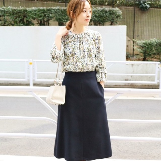 全体的にふわっとした印象になったので、小物は黒にしてコーデを引き締めました。