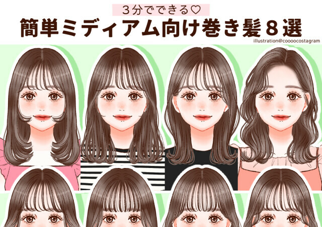③全体をほぐして毛先はコテで巻く