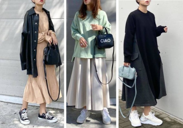 かごバックやヒールといったアイテム使いは、おしゃれさんに格上げしてくれるコツです。白や黒、ヌードカラーでシンプルにまとめれば、こなれ感がアップ!