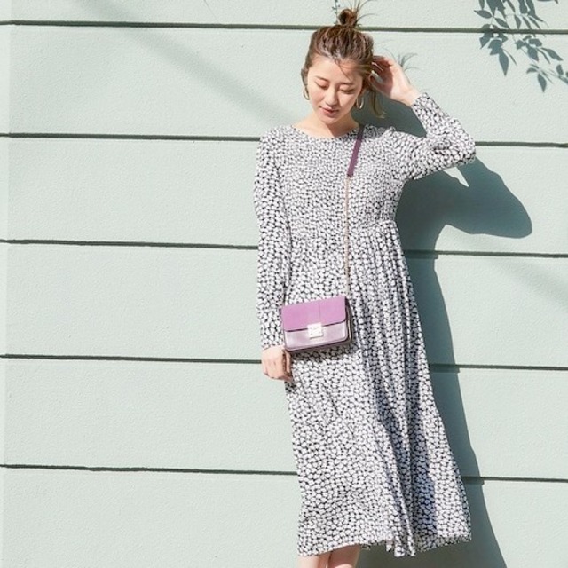 ストンとしたシンプルなワンピースにも効果大。差し色になって引き締まります。