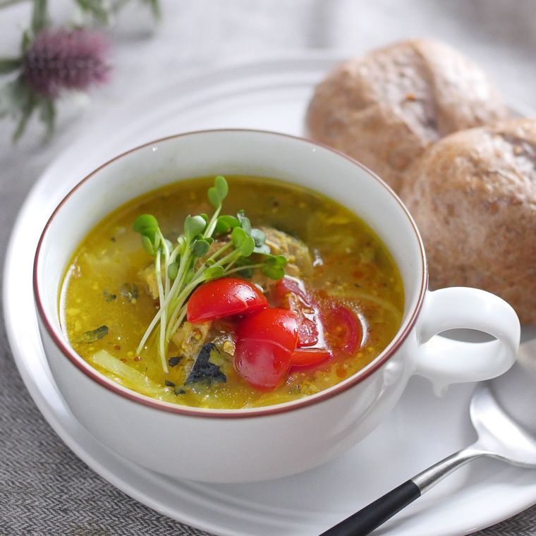 薄力粉を100g消費できる山梨の郷土料理「すいとん」。つるつるとコシのあるすいとんを、豆乳と白味噌仕立てのスープでいただきます。こっくりとしたやさしい味わい身体に沁みる一品です。
