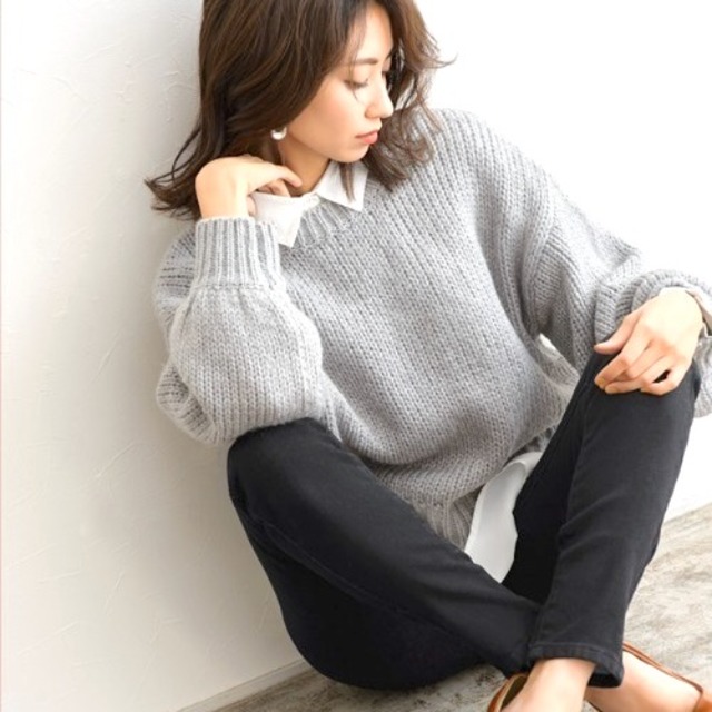 ゆるニット×スキニーの組み合わせは最高に細見えすること間違いなし!