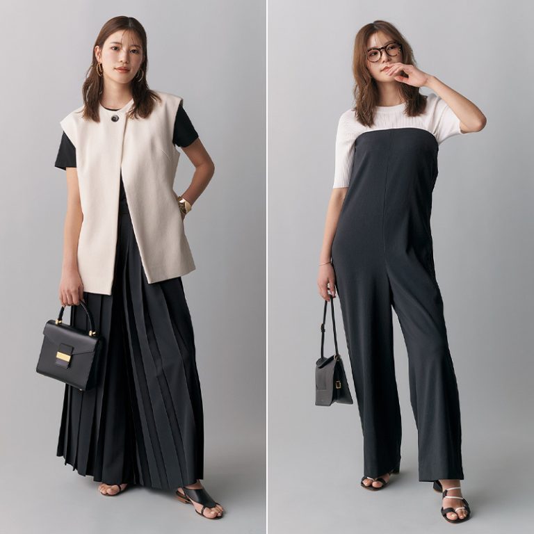 このコーデはシックな印象もありつつ、アクティブさも感じて、まさに大人の夏コーデですね。モノトーンでかっちりした印象があるので、ビーサンにすることで抜け感を演出しました。