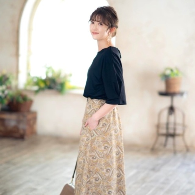旬のミディ丈で、低身長さんでも過度な露出の無い品の良さや、印象的に揺らめくフォルムを手に入れることが出来ます。