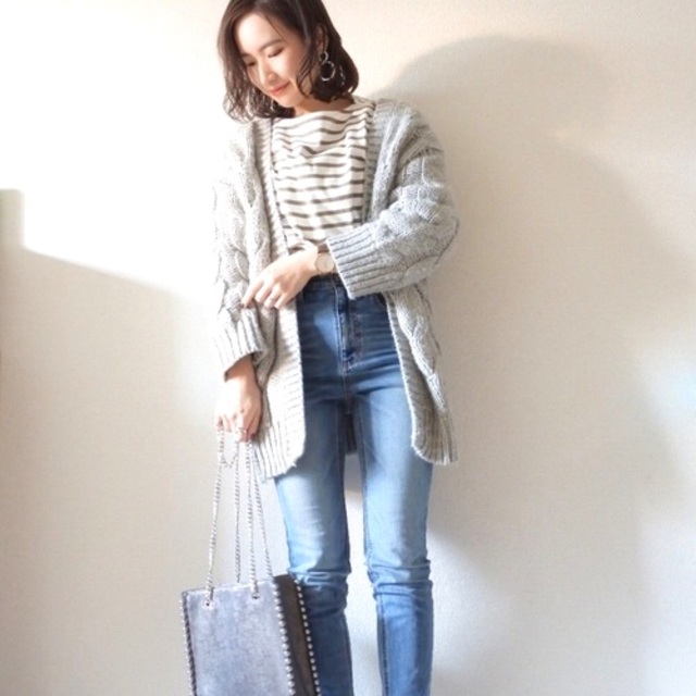 立体感のあるケーブル編みが可愛いニット。お尻がすっぽり隠れるほどのゆったりボリュームはリラックス感を出しつつ、こなれたおしゃれも叶っちゃいます。