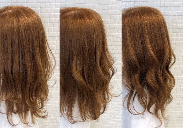 ②サイドの髪と①の髪(A,B,C)に分けます。