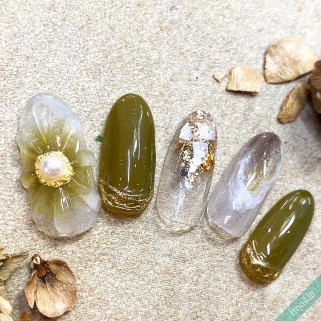 夏の終盤から秋の初めにぴったりなターコイズを施したデザインです。トレンドを取り入れつつどんなファッションにも合わせやすく、エレガントな印象を与えて大人の女性を演出してくれます♡