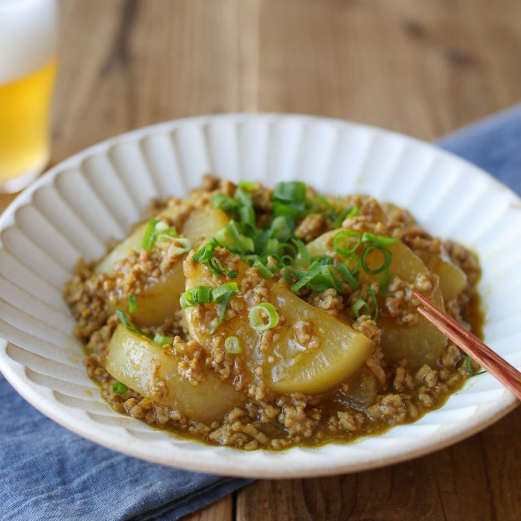「大根のカレーそぼろあん」のレシピと作り方を動画でご紹介します。大根をカレー味のそぼろと一緒に煮込み最後に片栗粉でとろみをつけたひと品です。とろとろのカレーあんが大根に絡んでお箸がとまらないひと品です。冷蔵庫に余った大根がある方にぴったりですよ♪