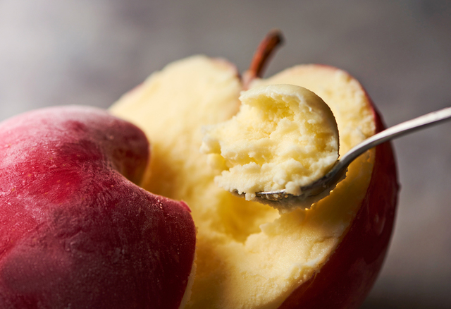 かなり大きめなりんご果肉も入っていますが、シロップ漬けなのでやわらかく子どもでも食べやすいです。やわらかいのでスプーンの練習にもぴったり。