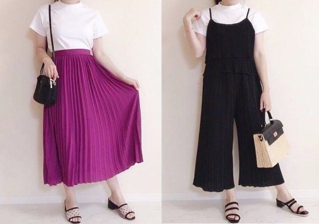 例えばサイドにプリーツを施したフェミニンさ溢れるパンツ。歩くたびにふんわりと揺れて上品さを演出してくれるんです♡
