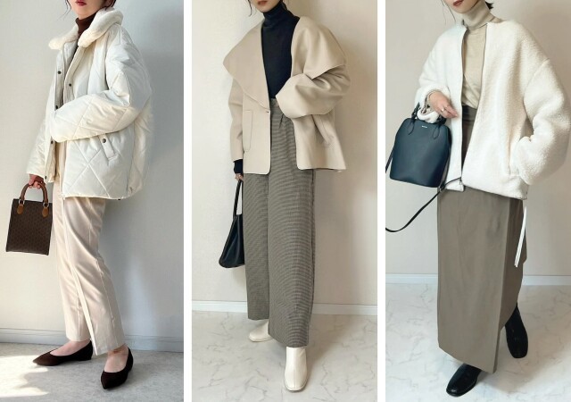 そんな時は黒、ネイビー、ブラウン、グレーなど軸となるカラーにクリーンな白をプラスした、2色のみで作るコーデがおすすめ。白は少ない分量であちこちに散らし、差し色のように使ってみてください。