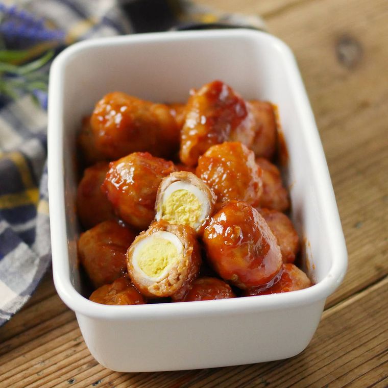 醤油やみりんなど甘辛いタレで照り焼き風に仕上げ、最後に一味唐辛子を振りかけてピリ辛味にまとめます。