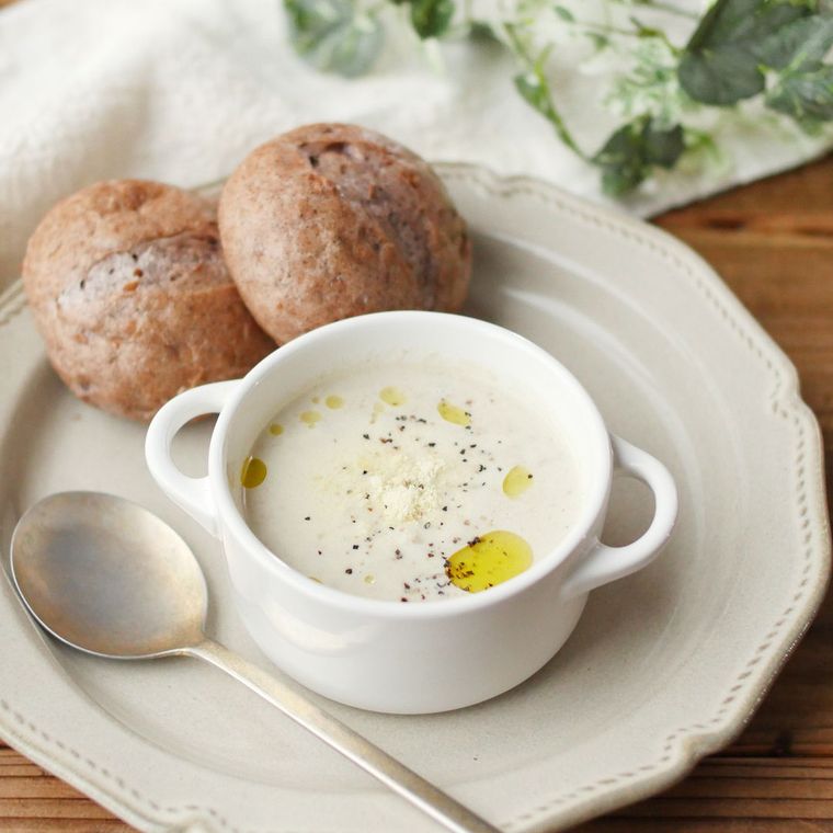 キノコやかぼちゃを入れた、ヘルシーな豆乳スープレシピです。白だしと塩のシンプルな味付けで、心も体もほっこり温まる美味しいスープが完成。仕上げにブラックペッパーをかけると味が引き締まります。