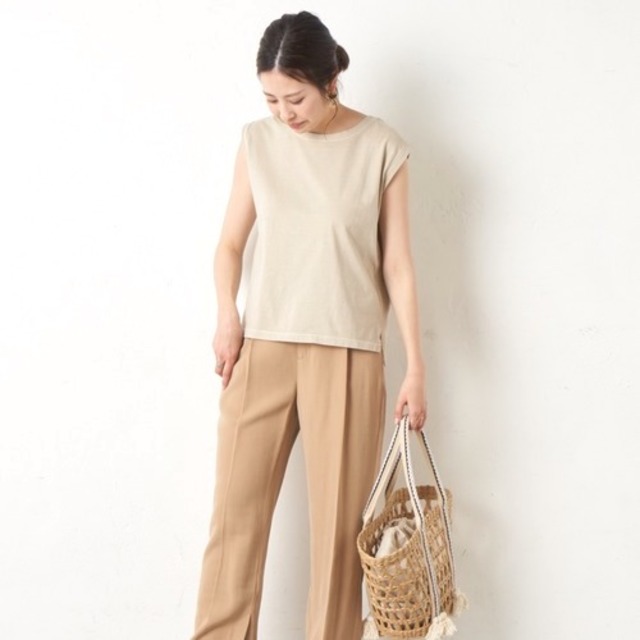 柔らかな素材感で着心地の良さも満点。すっきりとしたまとめ髪でバランス良く着こなすのがおすすめです。