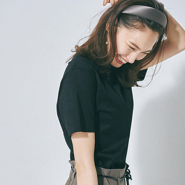 肩の落ちた丸みのあるデザインが女性らしいシルエットを作り出します。太めのパンツを合わせてモノトーンコーデを楽しみましょう。細やかな編み目が上品な印象なので、ビジネスコーデにも最適。