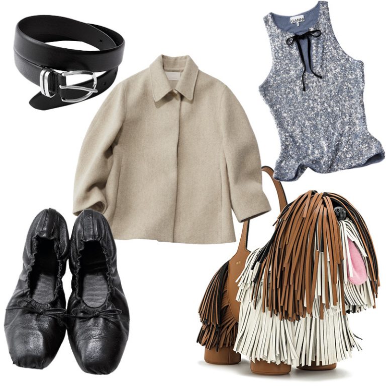 キュートな赤シューズは、フラットなパンプスを選ぶのが正解。とことんカジュアルにこだわり、大人可愛く見せるのが効果的です。